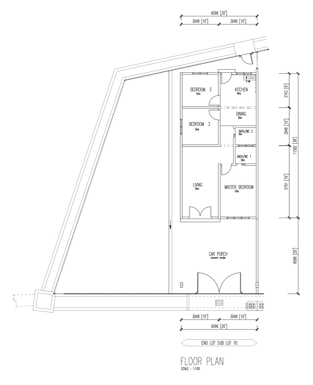 | Hiasan lantai | Ruang kedai - Lantai simen Bilik air - Jubin seramik Anjung - Jubin seramik |